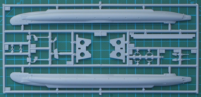 Bausatz: Mirage hat für seine U-Boote und Schiffe den Maßstab 1/400 festgelegt. Dafür gibt es inzwischen auch einen Markt. Der Bausatz stellt den Zustand des U-Bootes im Jahr 1955 dar.
