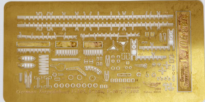 Diese Auflage ist mit einem Fotoätzbogen aufgewertet. Die Teile sind fein und haben Oberflächengravuren auf der einen Seite. Die Relings sind aber schwer zu verarbeiten. Normalerweise haben fotogeätzte Relings eine Leiste an der Unterkante, um die Montage zu vereinfachen. Diese nicht und deswegen muss man bei der Montage jede Relingstütze einzeln festkleben. Es fehlen auch Teile für die Propellerblätter, was Schade ist, da die Spritzgussteile für die Propeller ziemlich grob sind.
