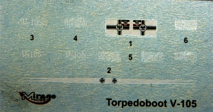 Vorbild: Die Torpedoboote V 105 bis V 108 wurden 1914 bei der Vulkan Werft in Stettin im Auftrag der niederländischen Flotte gebaut. Beim Kriegsausbruch wurden die noch nicht fertig gestellten Boote von der deutschen Flotte beschlagnahmt. Die V 105 und V 106 dienten mit der Hochseeflotte in der Nordsee, V 107 und V 108 in der Ostsee, wobei V 107 am 8. Mai 1915 von einer sowjetischen Mine versenkt wurde. Nach dem Ersten Weltkrieg übernahm die polnischen Flotte V 105 und V 108.