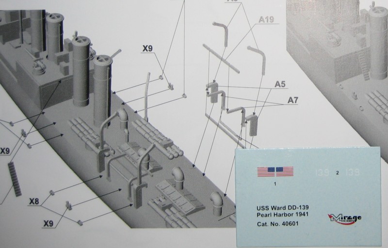 Das Vorbild: Obwohl die USS "WARD" nur einer der vielen "Flushdecker" der US-Navy war, verbinden sich mit diesem Schiff allerhand historische Merkwürdigkeiten. Innerhalb einer Rekordzeit von 15 Tagen vom Stapel gelaufen, wurde das Schiff nach dem ersten im amerikanischen Bürgerkrieg gefallenen Marineoffizier benannt. Ein weiteres "first" ergab sich am 7.Dezember 1941 um 6.45 Uhr vor Pearl Harbor, als die "Ward" das Feuer auf ein japanisches Kleinst-U-Boot eröffnete, das versuchte in den Hafen einzudringen, und somit den ersten Schuß im Pazifikkrieg abgab. Der Kommandant W.W. Outerbridge trug bei dieser Aktion bemerkenswerter Weise einen Kimono, da er direkt aus seiner Koje auf die Brücke gerufen wurde! Warum nach einem solchen Gefecht bei ohnehin drohender Kriegsgefahr nicht der ganze Marinestützpunkt in Gefechtsbereitschaft versetzt wurde, ist bis heute fragwürdig. Doch damit endete nicht das seltsame Schicksal der "WARD"- 3 Jahre später, exakt am 7.Dezember, wurde das nunmehr als Truppentransporter dienende Schiff bei einem Kamikazeangriff so schwer getroffen, dass es aufgegeben werden musste. Das brennende und treibende Wrack wurde von der USS "O'BRIEN", mit dem gleichen W.W. Outerbridge als Kommandanten versenkt.
