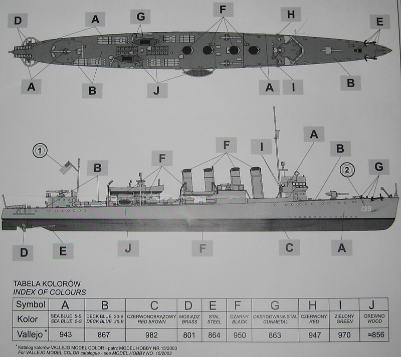 Der Bausatz: Mirage hat nunmehr diese Version seiner "Flushdecker"-Serie im Maßstab 1/400 herausgebracht und vervollständigt damit das Angebot in diesem traditionell in Frankreich/Polen/Russland beliebten Maßstab. Aber auch hierzulande gibt es viele Liebhaber dafür, da diese passend zu den Heller-Schiffsmodellen sind.