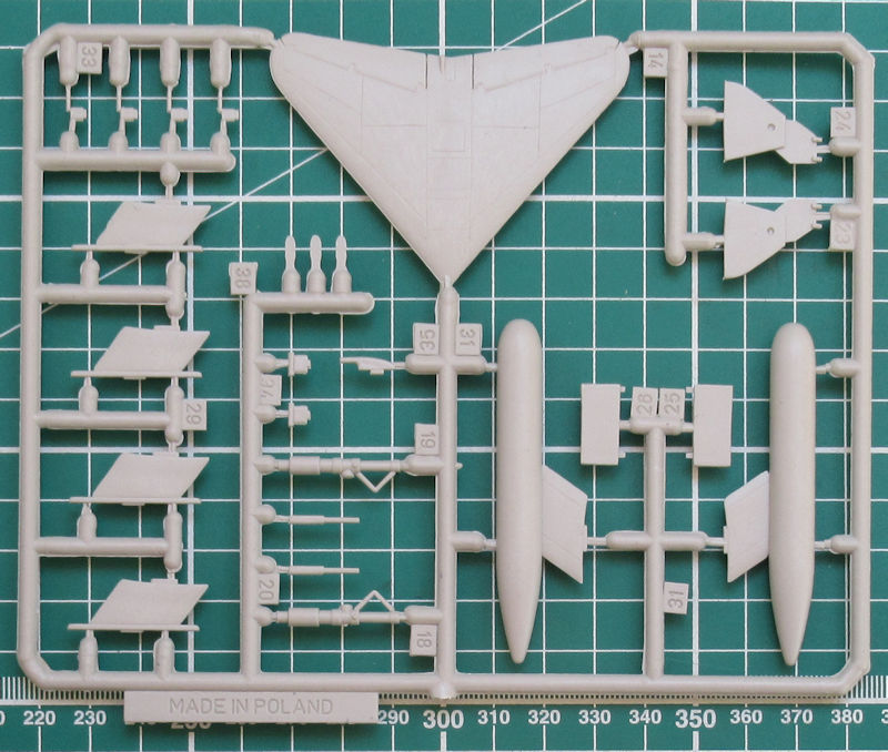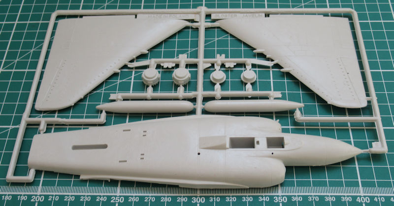 Im Rumpfbug soll ein Gegengewicht eingebaut werden. Allerdings wirkt dieser etwas unterdimensioniert. Das Hauptfahrwerk wirkt etwas einfach. Auch sind die Klappen fürs Fahrwerk ohne Struktur auf den Innenseiten. Das Höhenleitwerk besteht aus einem Teil und hat wie das Seitenleitwerk eine scharfe Hinterkante. Die Deltatragfläche entsteht aus vier Teilen. Für die Tragläche gibt es zwei Zusatztank und zwei kleine Fairey Firestreak-Raketen.