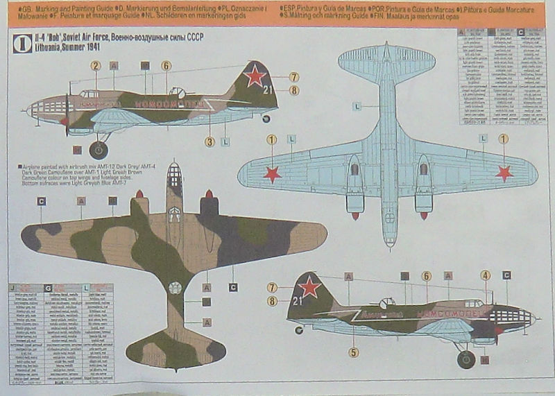 Vorbild: Die Iljuschin Il-4 (NATO Code Bob) entstand in direkter Weiterentwicklung aus der DB-3 mit stumpfer Rumpfnase. Ursprünglich wurde sie als DB-3F bezeichnet. Im Gegensatz zum Vorgängermuster war sie an der spitzen Rumpfnase mit einem 7,62mm MG zu erkennen. Sie war als zweimotoriger Bomber für Angriffe in das Hinterland des Feindes entwickelt worden. So flog die Il-4 in der Anfangszeit des Ostfeldzuges auch Angriffe gegen die Reichshauptstadt Berlin.