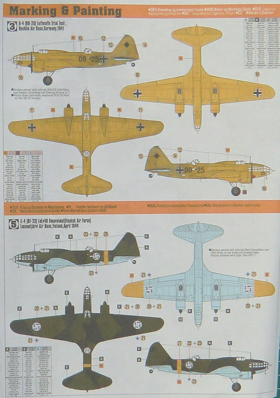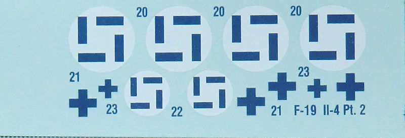 MisterCraft liefert schöne mehrfarbige Bemalungshinweise. Bei den Farben bezieht man sich auf Federal Standard und RAL. Die beiden Decalbögen sind tadellos gedruckt. Die deutschen und finnischen Hoheitszeichen sind mehrteilig. Allerdings fehlen die Markierungen DF-23.