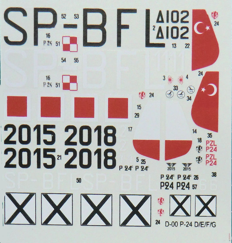 Bausatz: MisterCraft liefert hier alten Wein in neuen Schläuchen… Der Bausatz der PZL P-24 ist hier schon älteren Datums und stammt aus polnischen Formen. In dem sehr attraktiven praktischen Stülpkarton findet man gut verpackt zwei beigefarbene Spritzlinge, ein Klarsichtteil, zwei Decalbögen und die mehrfarbige Bau- und Bemalungsanleitung.