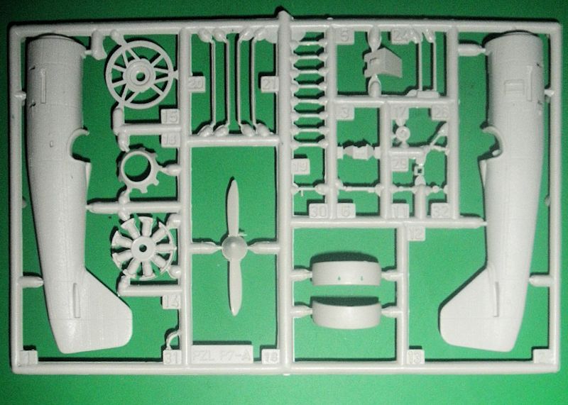 Der ansprechende Karton enthält zwei graue Spritzrahmen und ein kleines Klarsichtteil. Die Spritzgussteile sind recht gut und enthalten kaum Grat. Die Oberflächenstruktur ist ordentlich dargestellt. Auch das Kanzelteil ist - trotz des Alters - noch zu gebrauchen. Der Bauplan ist übersichtlich.
