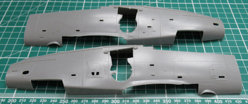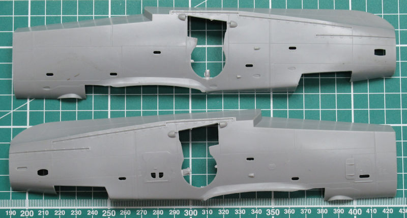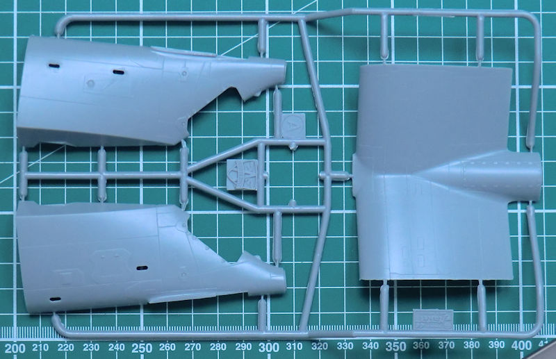 Schnell erkennt der Betrachter dass wir es hier nicht mit einem Anfängerbausatz zu tun haben. Der Rumpf ist mehrfach geteilt und damit können auch andere Versionen realisiert werden. Es gibt aber feine versenkte Strukturen und schöne Details.