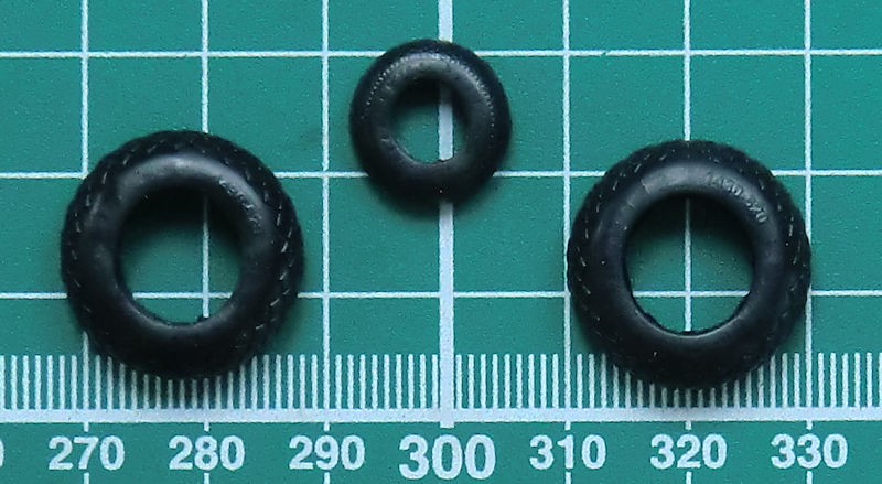 Die Fahrwerksschächte hat man mit vielen Details versehen wenn man die jeweils acht Teile zusammengeklebt hat. Diese sind im Gegensatz zum Cockpit nach dem Zusammenbau sehr gut einsehbar. Das Fahrwerk ist schön detailliert. Allerdings begeistern mich niemals die Gummiräder. Deren Profil ist ordentlich allerdings sehen sie etwas speckig aus. Mit einer Feile oder Sandpapier kann man diese aufrauen. Keineswegs mit Mattlack dabei gehen!