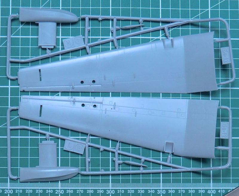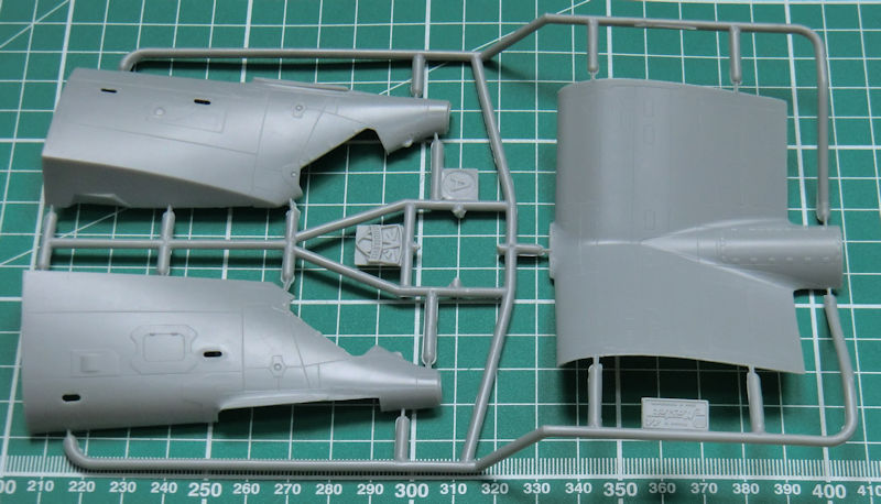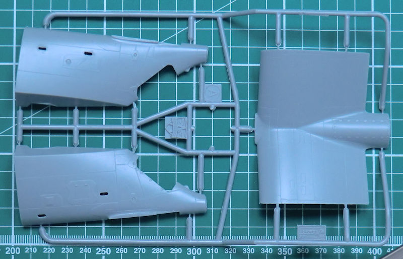Schnell erkennt der Betrachter dass wir es hier nicht mit einem Anfängerbausatz zu tun haben. Der Rumpf ist mehrfach geteilt und damit können auch andere Versionen realisiert werden. Es gibt aber feine versenkte Strukturen und schöne Details.