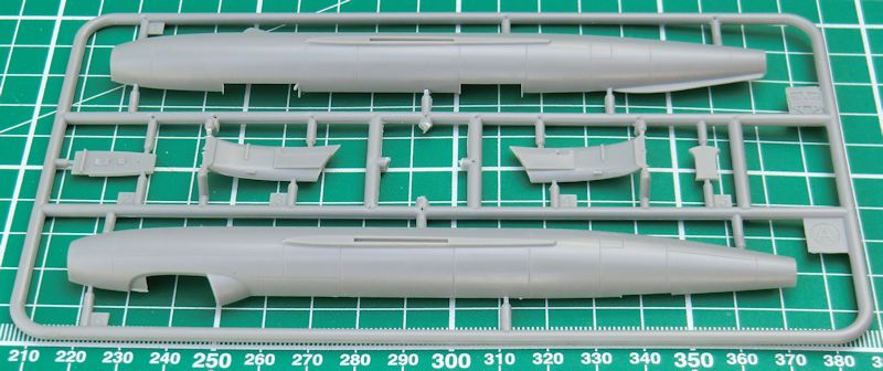 Das Cockpit entsteht aus wenigen Teilen. Aber es sind ein Schleudersitz, Steuerknüppel, Instrumentenbrett, Seitenruderpedale sowie eine Wanne vorhanden. Die Instrumente werden mittels Decals dargestellt. Die beiden Hauptfahrwerksschächte müssen mit dem Fahrwerk vor dem Zusammenfügen der Rumpfhälften eingebaut werden. Das gilt auch für die Auslassseite des Triebwerks. Aufgrund des Tandemfahrwerks ist kein Buggewicht erforderlich.