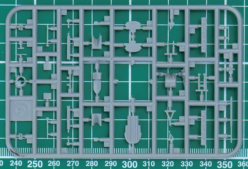 In dem praktischen Stülpkarton befinden sich gut verpackt drei graue Spritzgussrahmen mit 57 Teilen, ein Klarsichtteil, ein Decalbogen und die mehrfarbige Bau- und Bemalungsanleitung. Es handelt sich um einen typischen limitierten Short-Run-Bausatz mit feinen versenkten Strukturen.