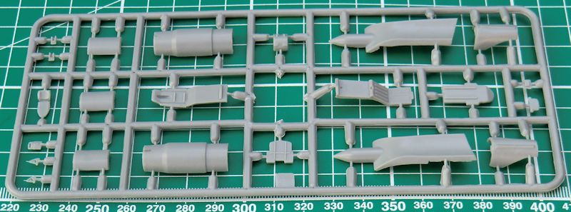 Es handelt sich hier um einen Short-Run-Kit. Die Abspritzung der Bauteile ist gut und Sinkstellen sind nicht zu entdecken. Weiterhin gibt es feine versenkte Strukturen.