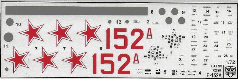 Der Abziehbilderbogen liefert Material für das gleiche Flugzeug zu unterschiedlichen Zeitpunkten. Farbangaben erfolgen für Humbrol.