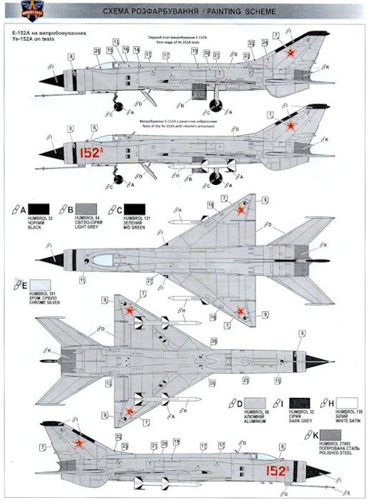 Vorbild: In den 1950er Jahren erhielt das OKB Mikojan-Gurewitsch den Auftrag ein einsitziges allwetterfähiges Jagdflugzeug zur Bekämpfung hochfliegender Überschallbomber zu entwickeln. Der so entstandene Entwurf E-150 ähnelt einer vergrößerten MiG-21, um so die zwei Triebwerke und die geplante Raketenbewaffnung unterzubringen. Triebwerkschwierigkeiten bei der E-150 führten zu einem zweiten Prototyp mit der Bezeichnung E-152A. Dazu erhielt die zweiten E-150 ein geändertes Heck für die zwei R11F-300 Triebwerke der MiG-21 mit einem maximalen Schub von je 3880 kg oder 5740 kg im Nachbrennerregime. Der Lufteinlasskegel der E-152A war nicht verstellbar, den Luftdurchsatz regelte ein beweglicher Schalenring im Rumpfbug. Die E-152A wurde für die Aufnahme von K-9 Lenkflugkörpern entwickelt, wobei die neue Radaranlage CP-1 verwendet wurde.