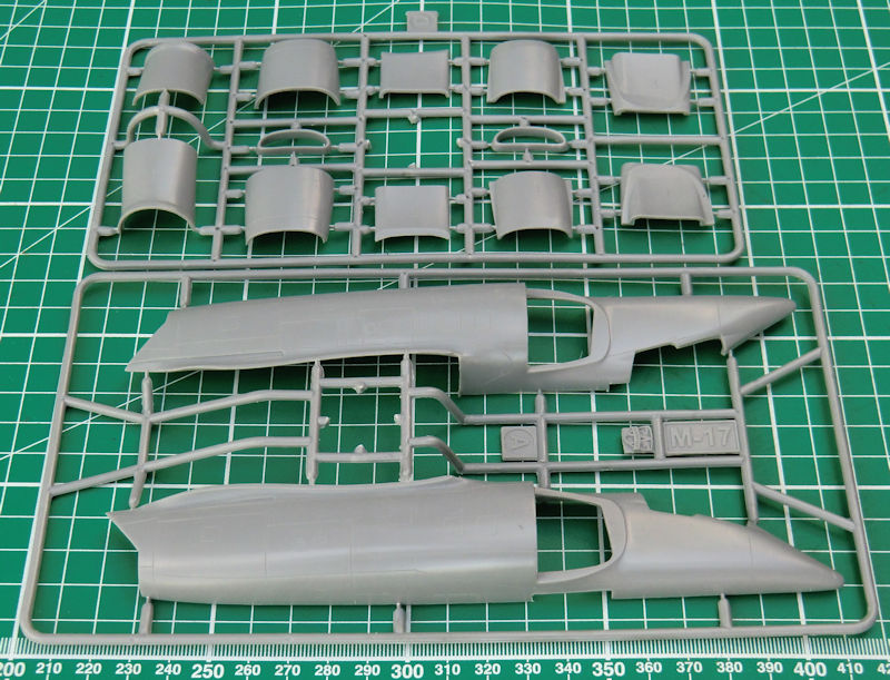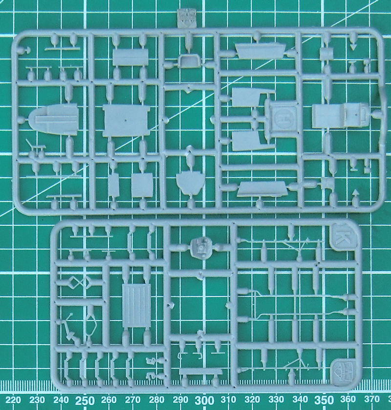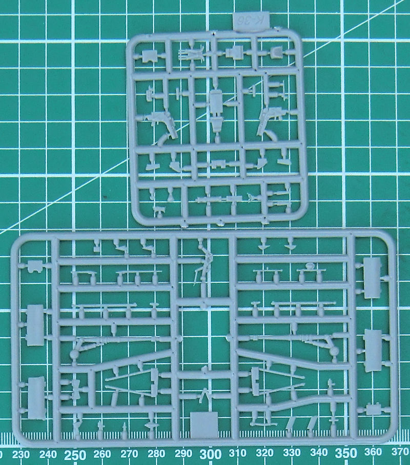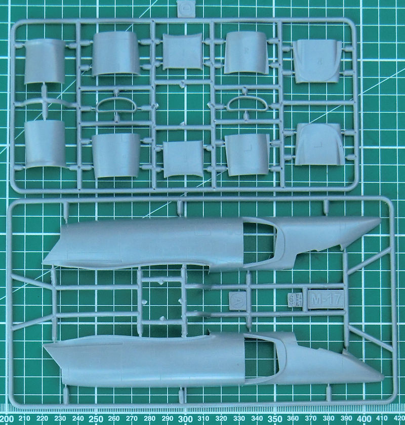 Bausatz: Die M-17 ist auch so ein Vorbild von dem man nie einen Spritzgussbausatz erwartet hätte. Hier hat sich nun das ukrainische Unternehmen Modelsvit dieser Sache angenommen und ein Short-Run-Bausatz ist dabei herausgekommen. In dem stabilen praktischen Stülpkarton befinden sich gut verpackt 159 Einzelteile, die sich auf 14 Spritzlinge oder Großbauteile verteilen, zwei Klarsichtrahmen mit acht Teilen, Masken, zwei Decalbögen und übersichtliche Bauanleitung. Da sowohl der zweite und der dritte Prototyp gebaut werden kann, gibt es auch einige Alternativteile.