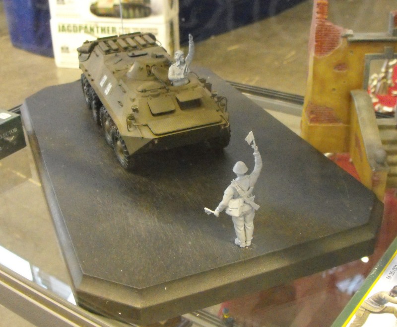 Für die Flaggen gibt es Bemalungshinweise. Leider sind keine für die Uniform vorhanden. Die Figuren sind hervorragend modelliert und auch gut gegossen. Sie bestehen aus mehren Teilen. Der Soldat mit der Panzerhaube besitzt nur einen Oberkörper. Somit kann er in eine offene Luke gesetzt werden. Müritz-Miniaturen nahm für die Präsentation den SPW-70 von Dragon/Zvezda.