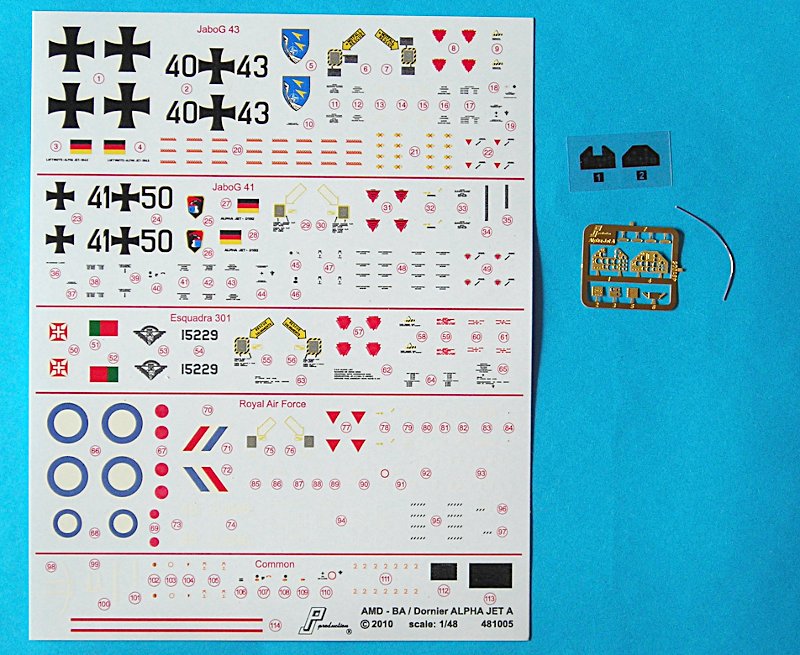 Bausatz: Der für die kontinental-europäische Luftfahrt durchaus bedeutende Alpha Jet ist eines der Stiefkinder der Modellbauhersteller. Zwar gibt es in 1/48 Bausätze von Fujimi, Heller und Esci, aber diese leiden alle unter verschiedenen "Krankheiten" und haben allesamt schon ein beträchtliches Alter vorzuweisen. Da sich Revell, für die dieses Projekt eigentlich prädestiniert wäre, bisher nicht an einen Bausatz herangemacht hat, springt nun PJ Productions aus Belgien in die Lücke und bietet Multimedia-Bausätze für die französische und deutsch Variante an.