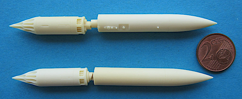 Detailsatz: PJ Produktion bietet ein breite Palette an Abwurfwaffen und Tanks für die Mirage III/ 5. Diese beiden Raketenbehälter sind aus Kunstharz sind sauber abgegossen. Pylone sind nicht im Satz enthalten. Die Bearbeitung der Teile entspricht dem Üblichen für solche Sätze: Abtrennen vom Gussblock, Trockenpassen, Versäubern, Verkleben mit Zwei-Komponenten- oder Sekundenkleber. Vor dem Lackieren ist das Entfetten nicht zu vergessen.
