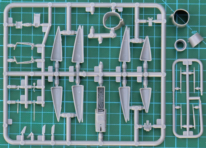 Bausatz: PJ production arbeitet mit High Planes zusammen und so ist es kein Wunder, dass es Plastikspritzgussteile von letzteren Hersteller garniert mit eigenen Resin- und Fotoätzteilen sowie Decals gibt. So befinden sich in dem attraktivem praktischen Karton vier graue Spritzlinge mit 107 Teilen, ein Klarsichtrahmen mit sieben Teilen, elf feine beige Resinteile, zwei klare Resinteile, ein kleiner Fotoätzteilbogen, ein Decalbogen, ein mehrfarbiger Bemalungsplan und die übersichtliche Bauanleitung.