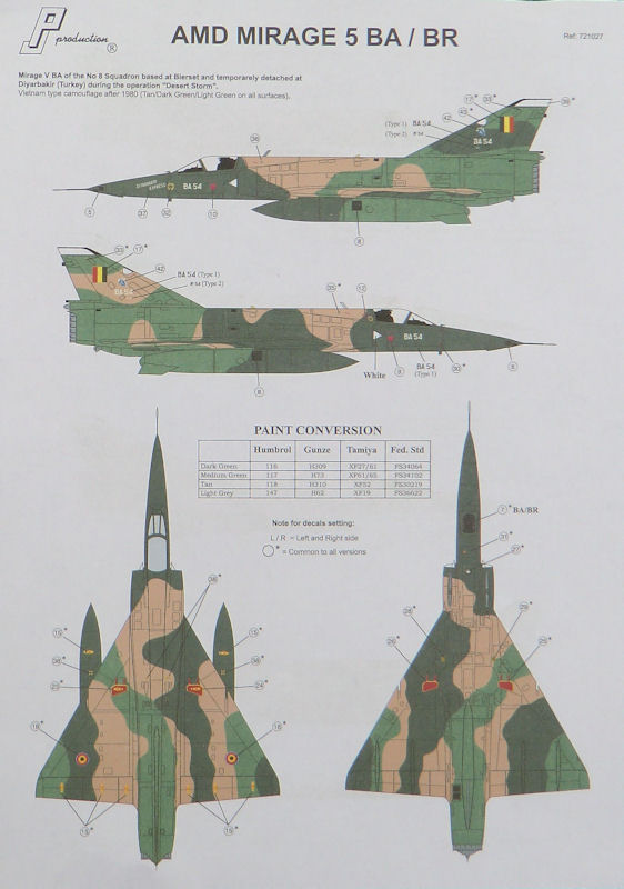 Der Decalbogen ist tadellos auf hellblauem Trägerpapier gedruckt. Die Bemalungsangaben sind für die Systeme von Humbrol, Gunze, Tamiya und Fed. Standard.