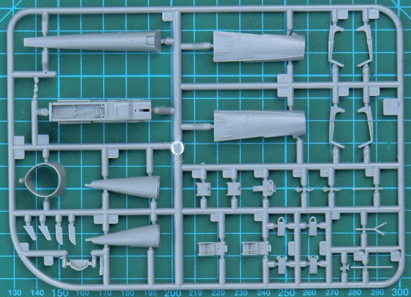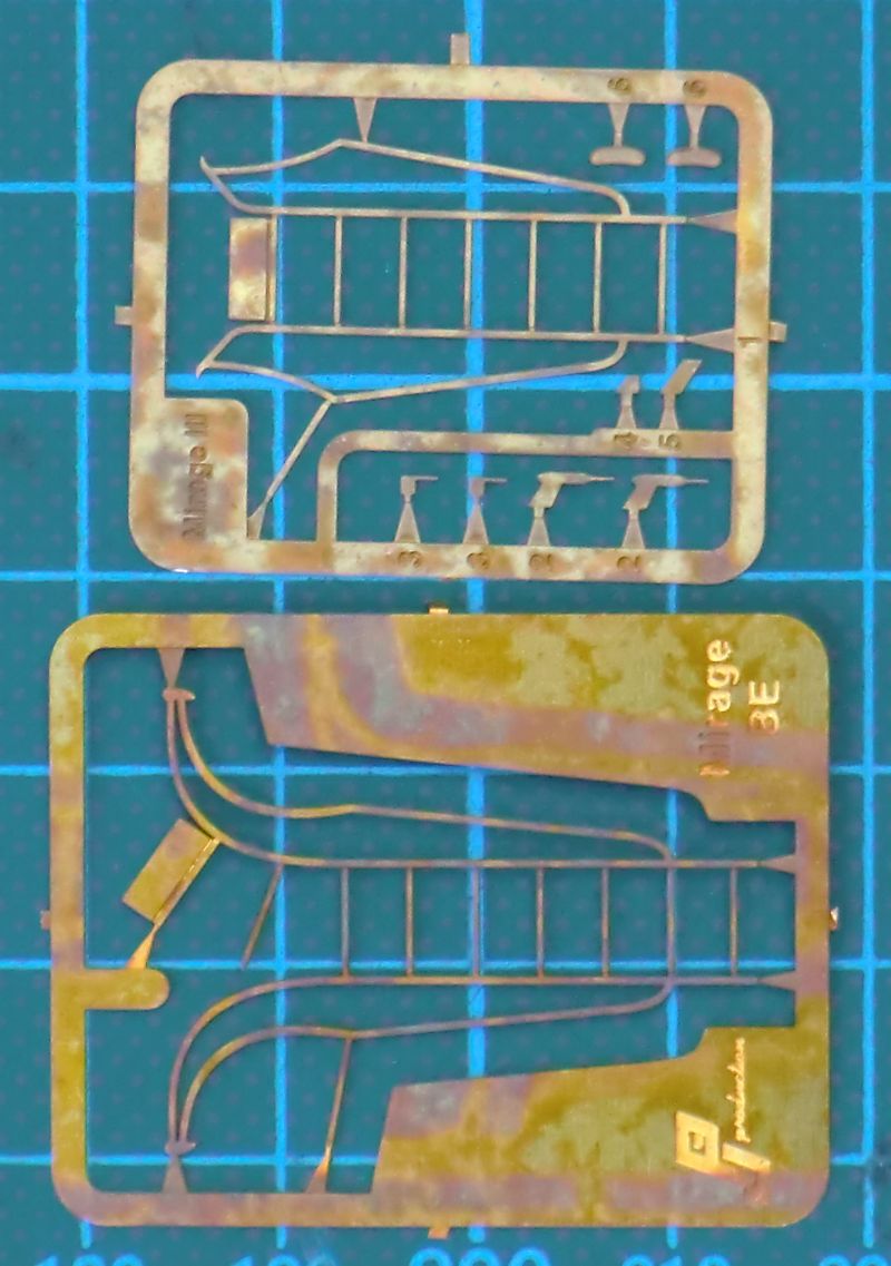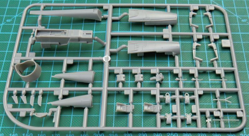 Die Spritzgussteile von High Planes sind von guter Qualität und keineswegs mit denen aus anderen Bausätzen dieses Unternehmens zu vergleichen. So gibt es feine versenkte Strukturen und eine sinnvolle Aufteilung der Bauteile. PJ hatte und ja auch Resinkomplett-Bausätze aus der Mirage III/5-Reihe im Angebot. Aus den Mastern dafür wurden einige Resinteile für diesen Kit abgeleitet. So gibt es für das Cockpit zwei Resinschleudersitze.