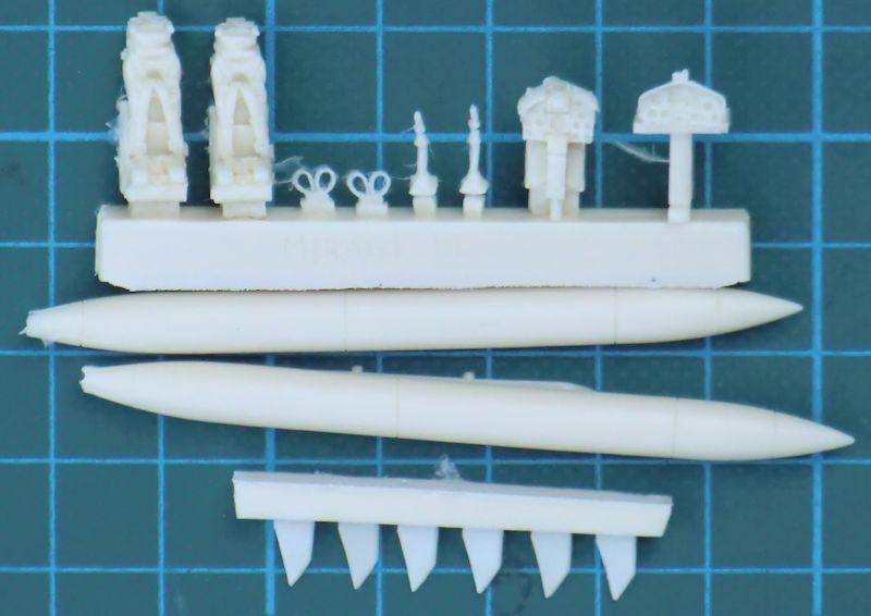 Fazit: Ein gut gemachter Bausatz der Mirage III/5-Doppelsitzer. Hier benötigt man vielleicht noch paar Masken für die Lackierung der Kanzel. Ansonsten ist alles komplett. Dieser Bausatz ist natürlich für den fortgeschrittenen Modellbauer sehr zu empfehlen.