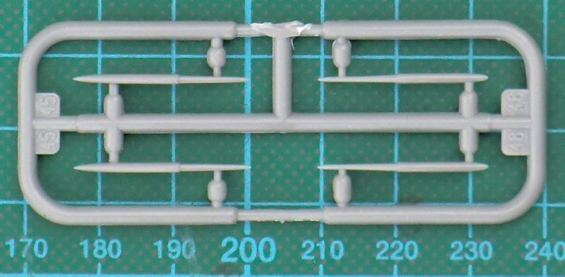 Für die einzelnen Versionen gibt es Alternativteile. Hier muss man sich früh für eine Version entscheiden. Interessant ist die Lösung der drei Teile für das Tragwerk. Diese sichert scharfe Hinterkanten sowie saubere Tragflächenenden. Der Rumpftunnel sowie das Seitenleitwerk werden separat aufgeklebt. Bei letzterem gibt es auch wieder zwei Optionen. PJ hat in diesem Bausatz auch an die unterschiedlichen Zusatztanks für die Tragfläche gedacht. Diese liegen aus Resinmaterial bei. Als kleinem Bonus gibt es noch zwei Einstiegsleitern aus Metall.