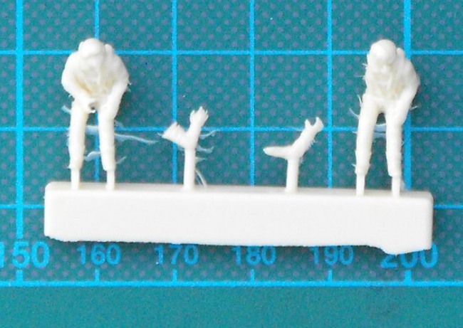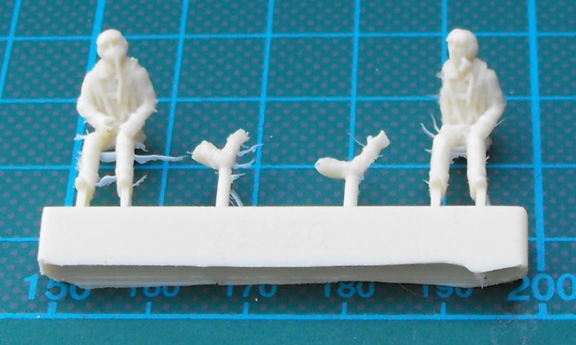 Die kleine Tüte enthält zwei blasenfrei gegossene Resinfiguren. Ein Pilot ist aus einem Stück gegossen. Die zweite Figur hat zwei Alternativen für den rechten Arm. Insgesamt machen die beiden Figuren einen stimmigen Eindruck und die Details kommen gut heraus.
