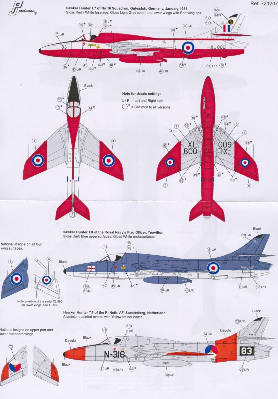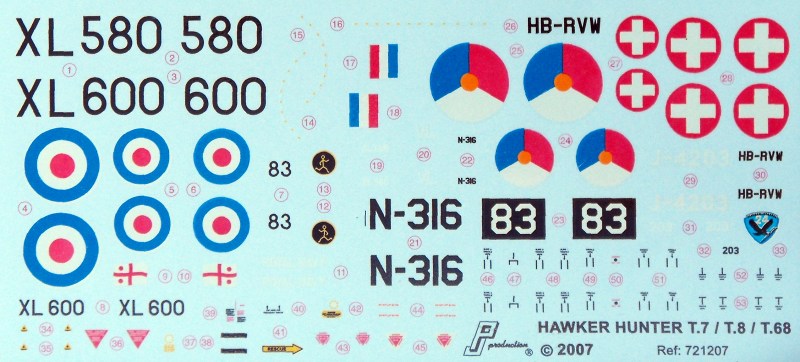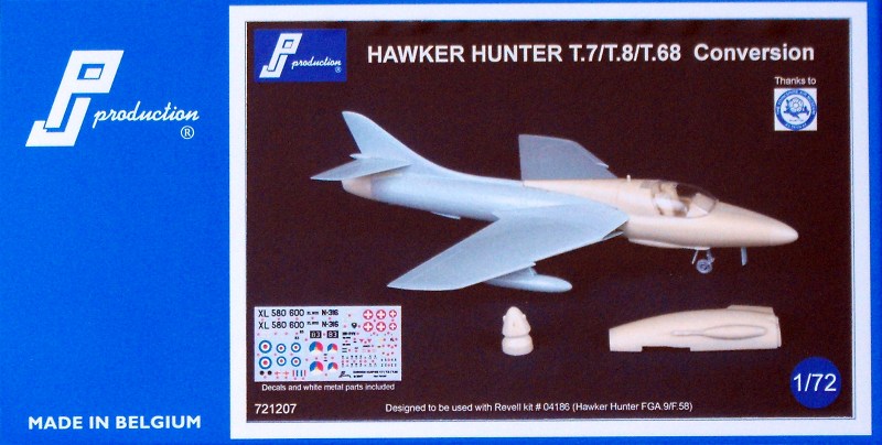 Umbausatz: PJproduction hatte vor einigen Jahren auch die Hawker Hunter als Komplettbausatz in verschiedenen Versionen im Angebot. Da war es nur eine Frage der Zeit bis auch ein Umbausatz für den Revellbausatz in 1/72 erscheint. Nun ist er für die Trainerversionen da. Für die T.7 und T.8 wird der Revellbausatz der Mk. 6 und für die T. 68 der Bausatz der FGA.9/F.58 benötigt.