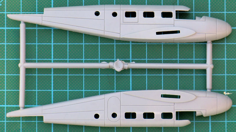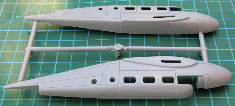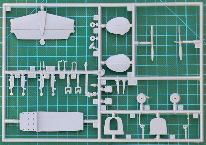 Hierbei handelt es sich um einen recht einfachen Bausatz. Er besteht nur aus wenigen Teilen und der Aufbau ist simpel. Er besitzt grobe negative Strukturen. Die Motoren verdienen diese Bezeichnung im Kit leider nicht. Zum Glück gibt es hier den Zubehörmarkt. Auch die Fahrwerksschächte sind stark vereinfacht. Dafür gibt es aber für das Cockpit und die Passagierkabine einige Teile. Immerhin sind das die Steuerhörner und die Sitze für Piloten und Copiloten.