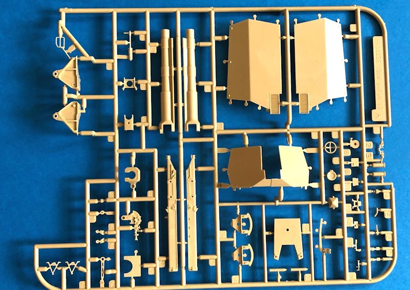 Bei den Gussästen wurden zwei mit den Teilen für das Laufwerk und die untere Wanne von dem seit einigen Jahren im Markt erhältlichen Panda Bausatz des Marder mit 7,5 cm Pak übernommen. Die beiden anderen Äste sind neu und beinhalten die spezifischen Teile für die Ausführung mit der 15 cm sFH.