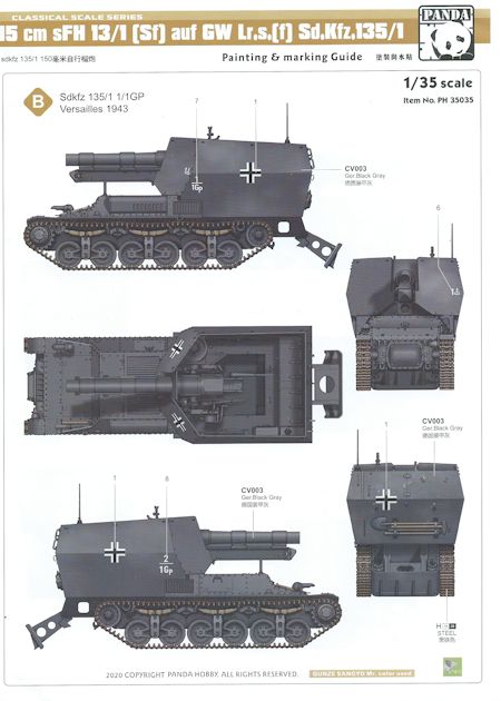 Bausatz: Bis zum Erscheinen dieses brandneuen Plastikbausatzes, gab es zum Bau des SdKfz 135/1 lediglich die Optionen den preiswerten aber ziemlich vereinfachten Bausatz von RPM zu kaufen oder den sehr gut gemachten, aber teuren Resin Bausatz von dem italienischen Hersteller Brach zu erwerben. Obwohl die Bezeichnung des Bausatzes formal korrekt ist, wäre es wahrscheinlich allgemeinverständlicher das Modell als Marder I mit 15 cm sFH zu bezeichnen.