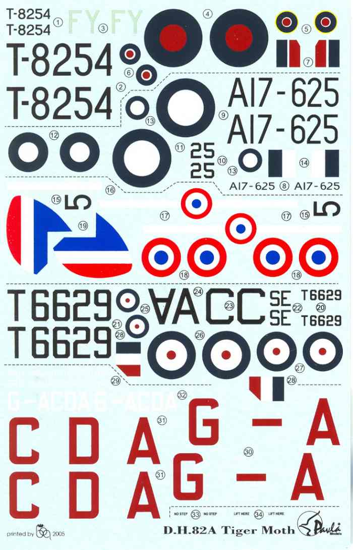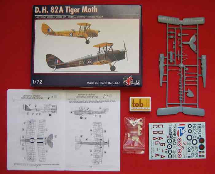 Wirklich gut gelungen ist die neue D.H. 82A Tiger Moth (Kit-No. 72051). Gegenüber der C-Version (Kit-No. 72052) hat man bei Pavla einen komplett neuen Spritzling mit einem anderen Höhenruder gemacht. Mit dabei - die offen oder geschlossen darstellbare Blindflugabdeckung für das hintere Cockpit. Erste Sahne ist der Decalbogen für: Die 611. RAF (Czech) Sqn. 1944 (Karton), gelbe A17-625 RAAF, Escadrille 2/595 Armée de l´Air Tong/Indochina 1941, für die zivile Hatfield Flugschule 1933 und eine Maschine Südrhodesiens 1949. Insgesamt ein sehr schönes Stück, welches die alten Airfix-Kits getrost in die "Mottenkiste" verbannt. Ein bitterer Nachgeschmack verbleibt lediglich beim vergleichsweise hohen Preis - doch diese Entwicklung ist wohl nicht mehr umkehrbar. Schon lange sind Ostmodelle nicht mehr Billigware...