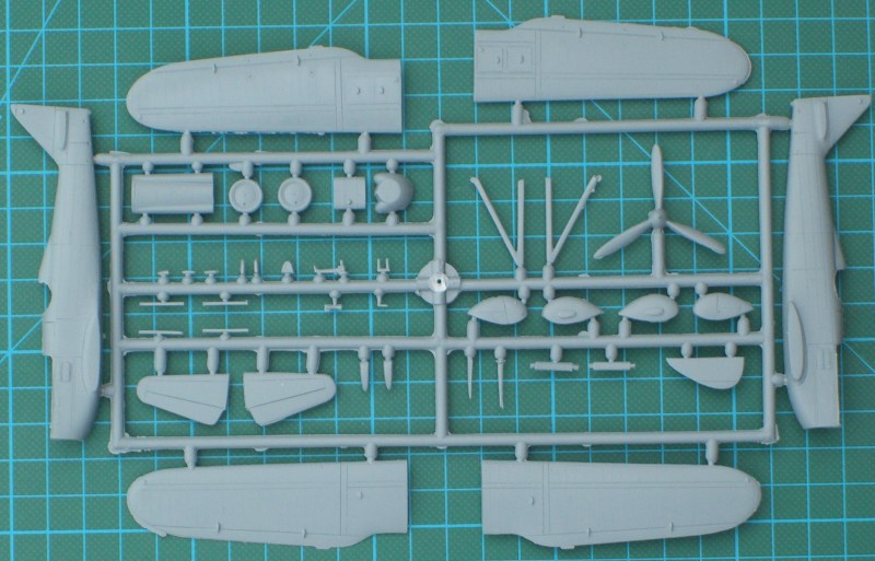 In der üblichen Pavla-Schüttelbox befinden sich gut verpackt ein hellgrauer Rahmen mit gut detaillierten Spritzgussteilen, zwei Vaku-Windschutze, eine Tüte mit Resinteilen sowie ein Decalbogen. Die Spritzgussteile besitzen feine versenkte Gravuren. Sie sind aber nicht frei von Grat. Ärgerlicher sind da schon die Auswerfermarkierungen an den Innenseiten, deren Entfernen allerdings kein Problem ist. Leider bestehen Propellerblätter und -nabe aus einem Bauteil. Hier hätte ich mehr erwartet.
