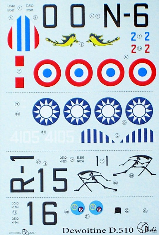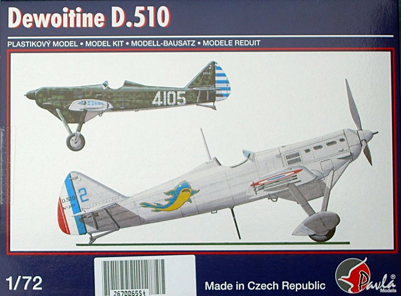 Vorbild: Die Dewoitine D. 510 ist der Vorläufer des besten französischen Jagdflugzeug im WK II der D. 520. Seinen Ursprung hatte die D. 510 in der 1932 erstmals geflogenen D. 500. Sie war ein recht modern aussehender Jagdeinsitzer mit starrem Fahrwerk und wurde von einem Hispano-Suiza Zwölfzylinder Reihenmotor angetrieben. Insgesamt wurden 100 D. 500 und 163 modifizierte (mit einer 20 mm Oerlikon Motorkanone durch den Spinner schießende Motorkanone versehende) D. 501 für die französische Luftwaffe und die französische Marine produziert. Einige Maschinen wurden davon später exportiert. Die letzten Exemplare wurden noch zu Beginn des WK II eingesetzt.