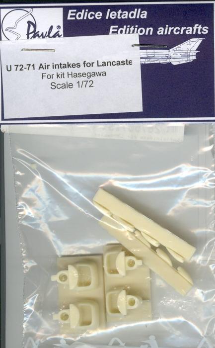 Stück für Stück entdecken die Zubehörhersteller die Lancaster von Hasegawa. Nun hat auch Pavla ein Set herausgebracht. Es umfasst die vier großen Lufteinläufe der Rolls & Royces Merlin und die davon links und recht befindlichen kleinen Lufteinläufe (Siehe Vorbildfoto!). Die großen Lufteinläufe haben auch gleich einen strukturierten Kühler und das Kunststoffteil aus dem Bausatz kann am Spritzling bleiben. Es ist auch so aufgebaut, dass es das Bausatzteil komplett ersetzt. Kein Gefummel oder so ist nötig! Einfach austauschen und fertig. Gleiches gilt natürlich auch für die acht kleinen Lufteinläufe der Merlin. Einfach toll gemacht. Beim Vergleich mit dem Vorbild fällt allerdings auf, dass die obere Verjüngung der großen Lufteinläufe nicht im Resinteil umgesetzt ist. Es liegt in dieser Beziehung gleichauf mit dem Bausatzteil, hat jedoch den entscheidenden Vorteil, dass die Kante des Einlaufes viel schärfer und damit realistischer getroffen ist.