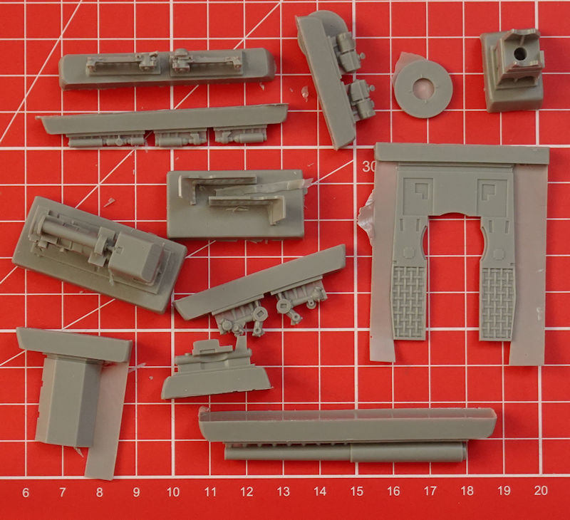 Der Guss ist tadellos und die Angüsse sind sinnvoll gewählt. Die CAD-Zeichnungen zeigen in 20 Bauabschnitten wie alles zusammengefügt wird. Die Ätzteile sind in der Hauptsache für die Handräder. Das Kanonenrohr ist tadellos gegossen und muss von den zahlreichen dünnen Angüssen abgetrennt werden. Sicherlich hätte man sich hier ein Drehteil gewünscht aber das hätte vermutlich den Preis deutlich erhöht.