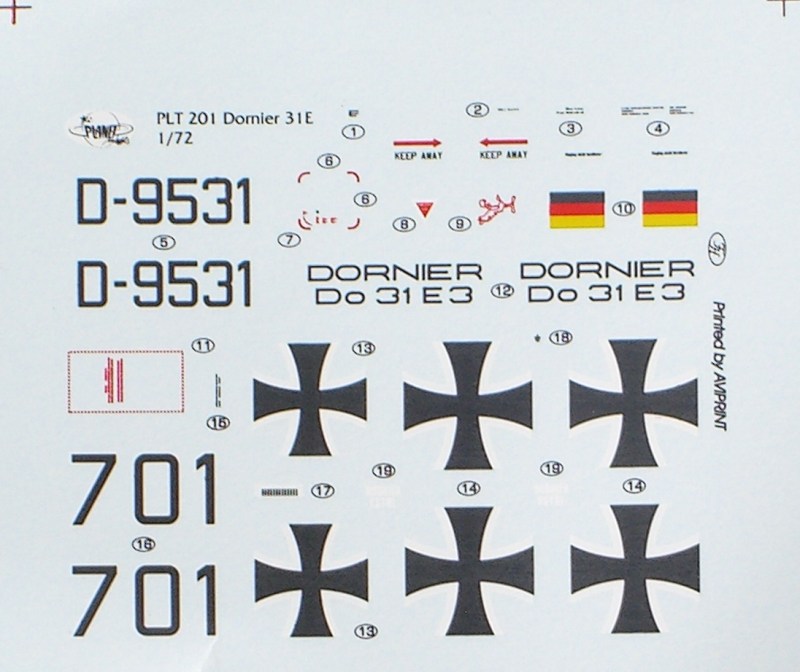 Die Bemalungsanleitung ist klein aber übersichtlich. Mit geringem Versatz wurden die Decals auf hellblauem Trägerpapier gedruckt.