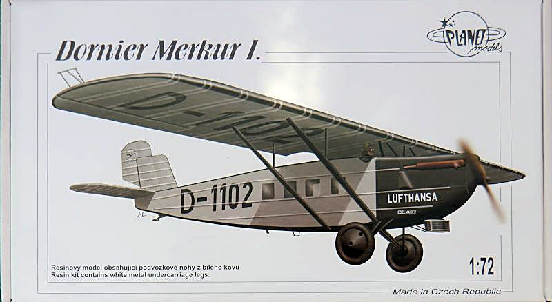 Bausatz: Da uns wohl in absehbarer Zeit kein Spritzgussbausatz der Dornier Merkur in 1/72 zur Verfügung stehen wird, ist diese Ausgabe von PLANETmodels sehr willkommen. In dem sehr stabilen Karton befinden sich gut verpackt 58 graue Resinteile, eine Klarsichtfolie, vier Zinnteile, drei Decalbögen und die informative Bauanleitung. Der Guss der Resinteile ist voll auf der Höhe der Zeit. Verzug konnte ich nicht erkennen. Die äußere Struktur des Vorbildes ist sehr schön wiedergegeben worden.