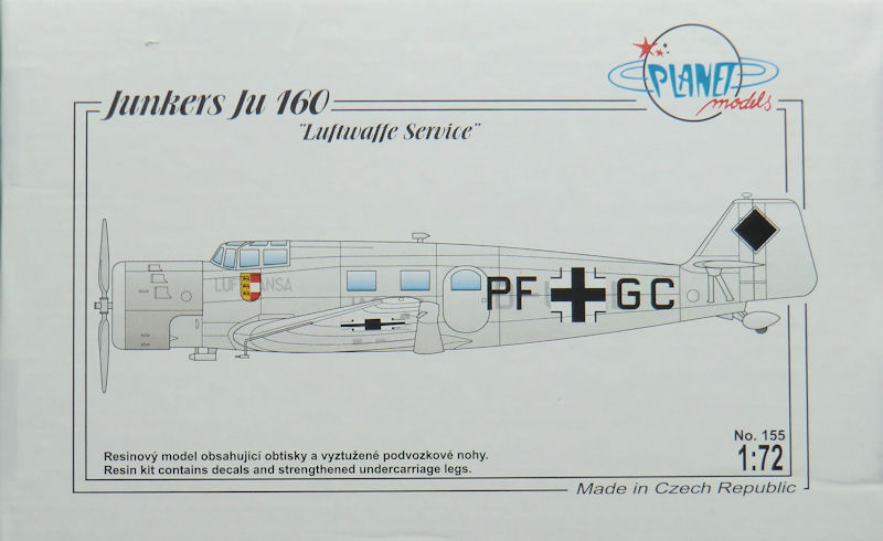 Bausatz: Vor einigen Jahren erschienen bei Classic Plane-Resin die Ju 60/160 Reiihe als Resinkit. Diese sind grundsätzlich stimmig, erfordern allerding einen erheblichen Bauaufwand. Nun liefert PLANETmodels einen Resinkit. Im stabilen Stülpkarton befinden sich gut verpackt 26 cremefarbene Resinteile, zwei schwarze Fahrwerksteile aus Resin, zwei Vacukanzeln, Klarsichtfolie, ein Decalbogen und die Bauanleitung.