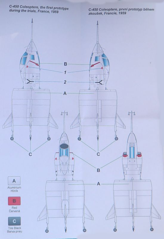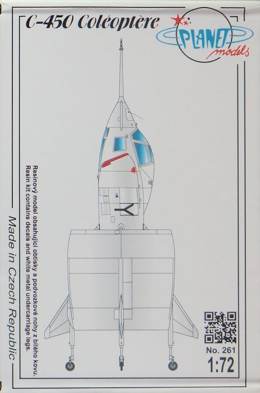 Bausatz: PLANETmodels ist immer wieder für Exotische Vorbilder in verschiedenen Maßstäben gut. So passt natürlich dieser Senkrechtstarter SNECMA C.450 Coléoptère sehr gut ins Angebot. In dem praktischen Karton befinden sich gut verpackt 26 Resinteile, vier Klarsichtteile aus Vacumaterial, vier Zinnteile, ein Decalbogen und die mehrfarbige Bau- und Bemalungsanleitung.