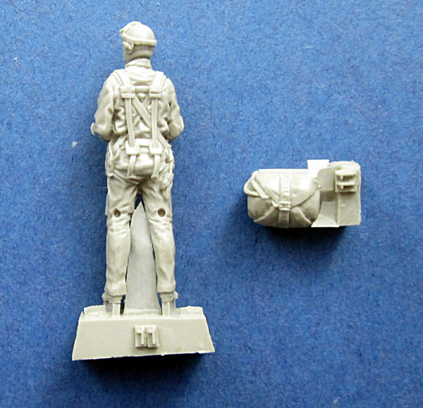 Der Bausatz ist zweiteilig. Die Figur ist als Ganzes gegossen lediglich der Fallschirm ist ein separates Teil. Der Guss ist sehr gut und blasenfrei, die Figur mit Ausrüstung und Faltenwurf gut gestaltet. Meinem Exemplar lagen fälschlicherweise noch Decals für moderne US Piloten bei. Vor der Bemalung müssen wenige Gusshäute und -nähte versäubert werden. Für die Bemalung liegt lediglich das Titelbild noch einmal bei, sie ist aber auch nicht zu kompliziert