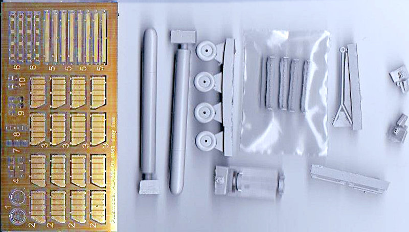 Der Resinguss ist scharf und blasenfrei. Alle Teile weisen eine hohe Detaillierung auf. Dem Bausatz liegt ein Ständer und Transportwagen bei. Abgerundet wird der Bausatz durch eine Platine sinnvoller Ätzteile, womit zum Beispiel das Leitwerk nachgebildet werden kann. Der Bausatz ist in einer transparenten stabilen Plastikhülle verpackt. Der Preis liegt bei etwas über 10 Euro.
