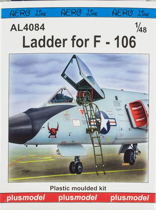 Für eine schön abgestellte F-106 gibt es von Plusmodell eine passende Einstiegsleiter. Die Sprossen müssen einzeln in die Leiter eingesetzt werden. Das genaue Ausrichten könnte so eine kleine Fummelarbeit werden - aber nichts Kritisches.