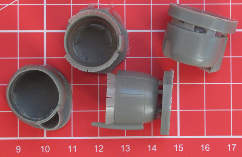 So befinden sich in der durchsichtigen Kunststoffverpackung zehn Resinteile und eine kleine Bauanleitung. Mit Hilfe dieser Teile lassen sich die Motorgondeln des MINICRAFT-Bausatzes neu aufbauen. Dabei werden die eigentlichen Motorhauben über den Lufteinlass mit dem hinteren Teil mit Hilfe des langen Lufteinlaufes verbunden. Dadurch sind die Abluftklappen offen und sehr dünn.