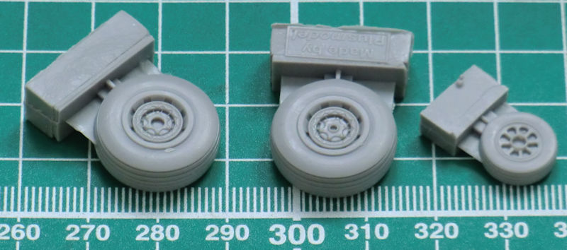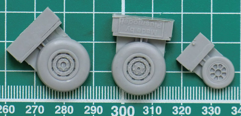 In der Verpackung befinden sich drei sauber gegossene Räder. Diese besitzen im Vergleich zu den Bausatzteilen sehr schöne Details.