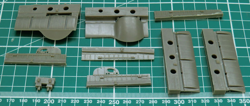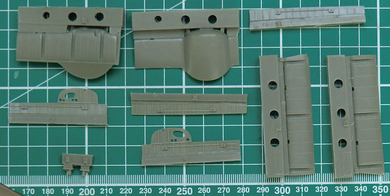 Im stabilen Karton befinden sich gut verpackt neun graue Resinteile, ein Fotoätzteilbogen, ein Stück Kupferdraht, ein Decal und die Bauanleitung. Letztere ist sehr übersichtlich und sie zeigt genau was wohin gehört. Da auch die Säge angesetzt werden muss ist es kein Set für Einsteiger. Das Verkleben der kleinen Metallteile ist auch eine planmäßige Fummelei.