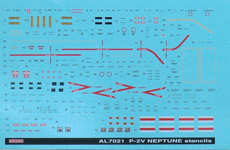 Für die Lockheed P2V/SP-2 Neptune in 1/72 von Hasegawa (Auflagen bei FROG und Revell) hat PLUSmodel unter dem Label AERO Line einen Decalsatz für die Wartungshinweise herausgebracht.