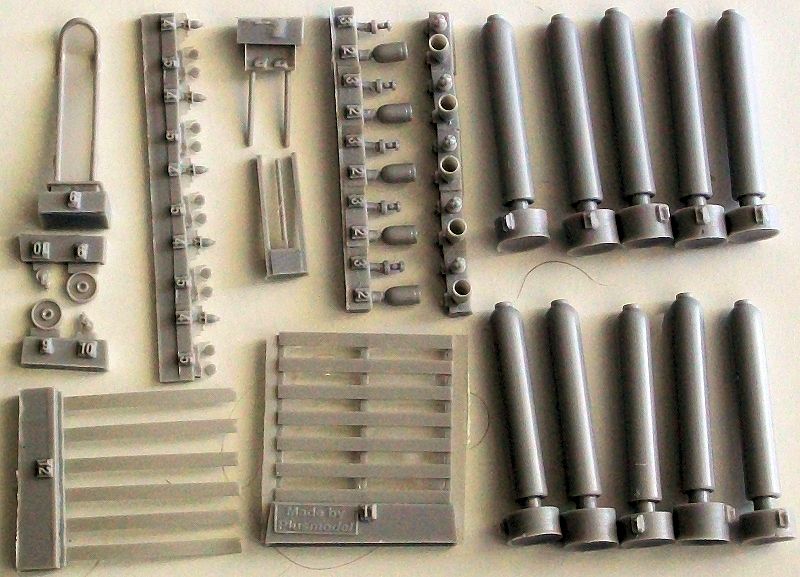 Die Resinteile sind sauber gespritzt. Die Platine mit Ätzteilen enthält sieben Teile für den Gaskarren.