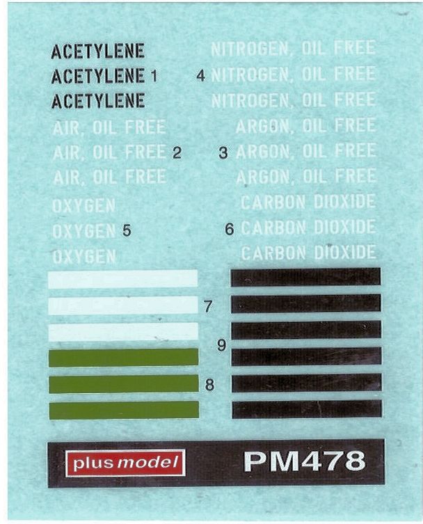 Zusätzlich liegt ein Abziehbildersatz mit Bezeichnungen für den Inhalt der Gasflaschen bei. Ein Bauplan für die Palette und den Karren ist vorhanden. Im Bauplan ist das Farbschema für den Inhalt der Flaschen erläuter. Das Titelbild dient als Farbvorlage.